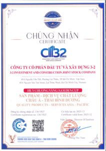 Theo chứng nhận do Viện Thẩm định Chất lượng Quốc tế cấp, C32 đáp ứng các tiêu chí đánh giá về năng lực hoạt động, chất lượng sản phẩm – dịch vụ, cũng như cam kết phát triển bền vững trong lĩnh vực đầu tư và xây dựng, Chứng nhận có hiệu lực từ năm 2025, là cơ sở khẳng định vị thế và sự tin cậy của doanh nghiệp đối với khách hàng và đối tác.